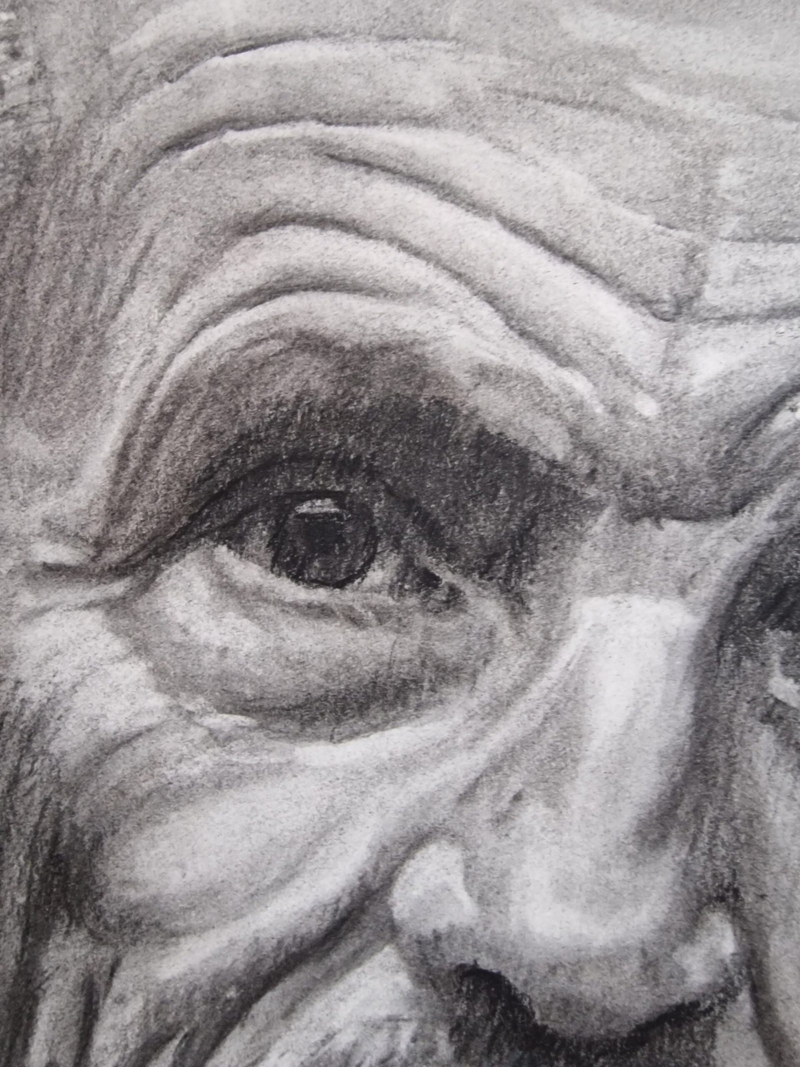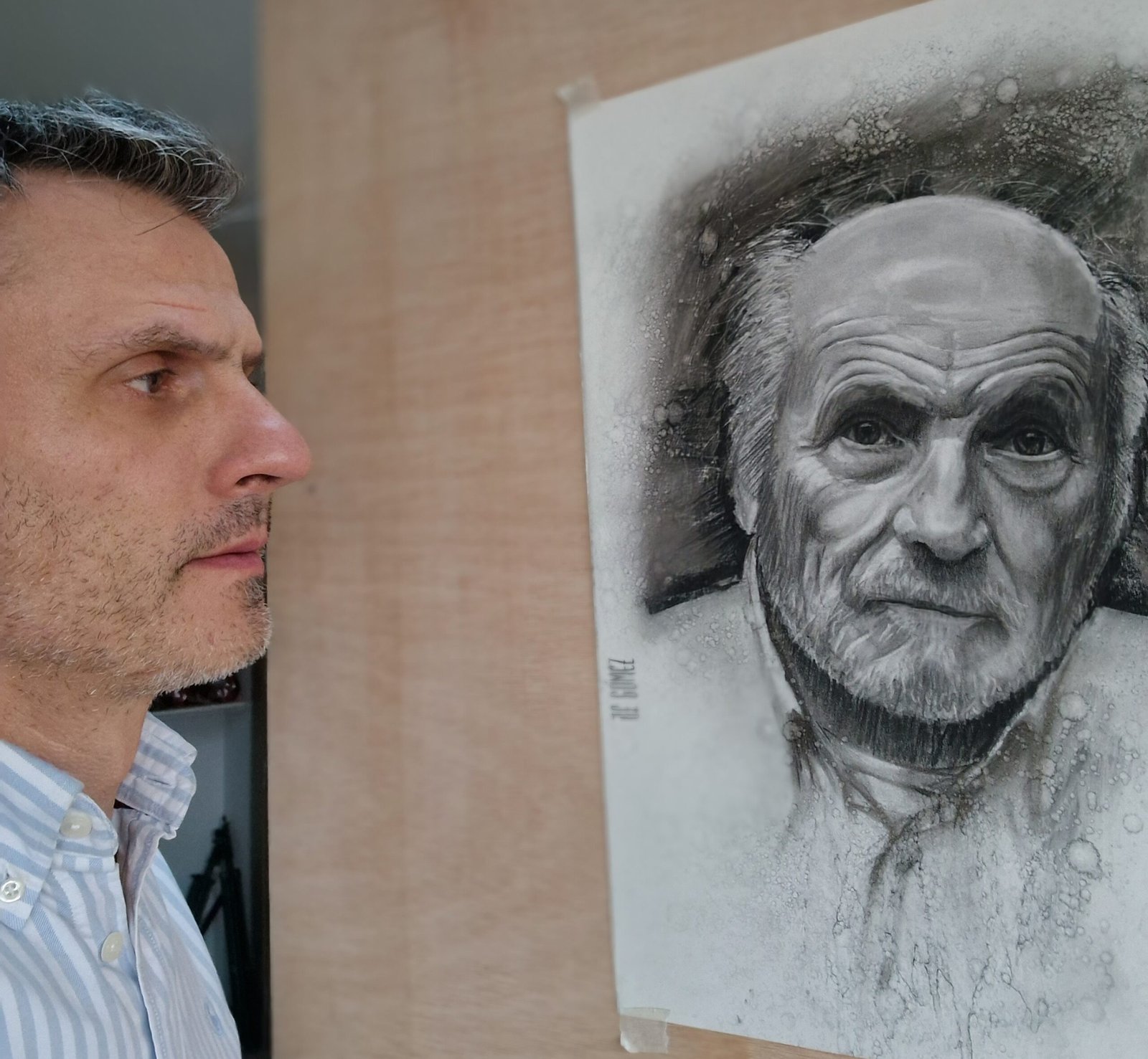 As I worked, I felt a mix of respect and closeness; it was as if I could glimpse, even just a little, into the life of someone who has devoted so much to exploring truth in the everyday. His face, marked by years and experience, made me think about all he has witnessed and the stories those wrinkles might tell.