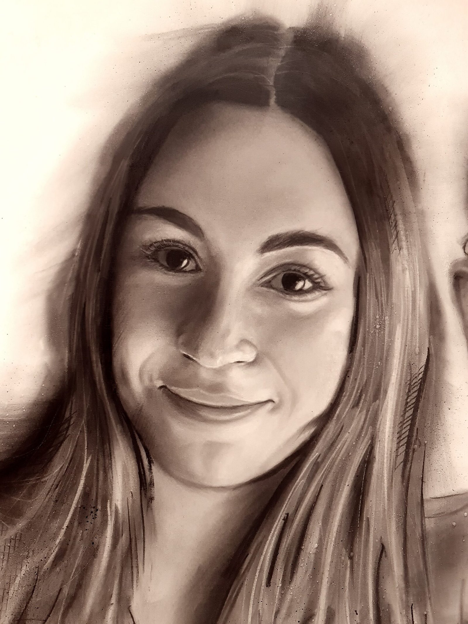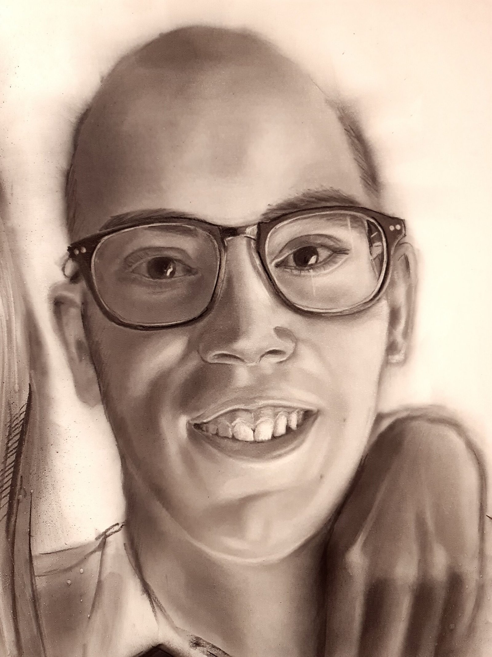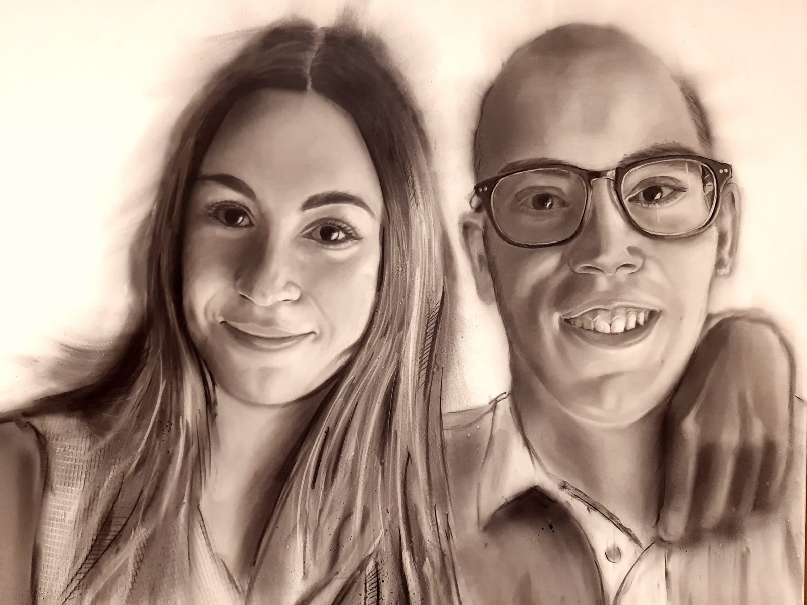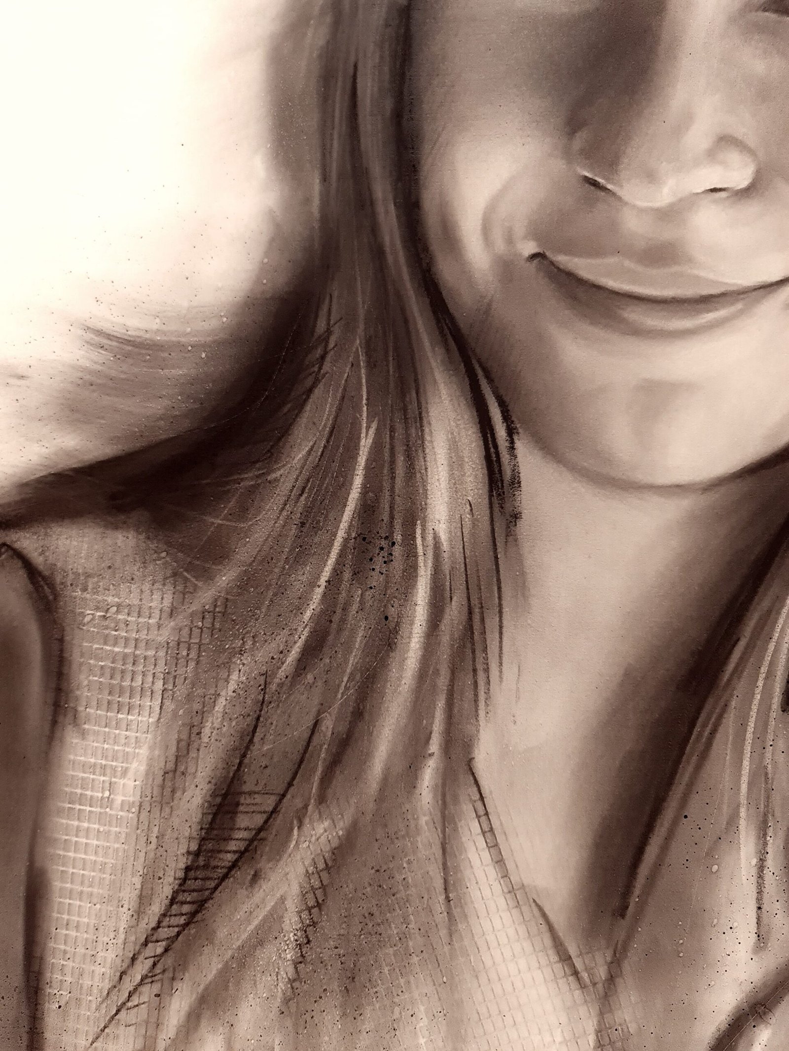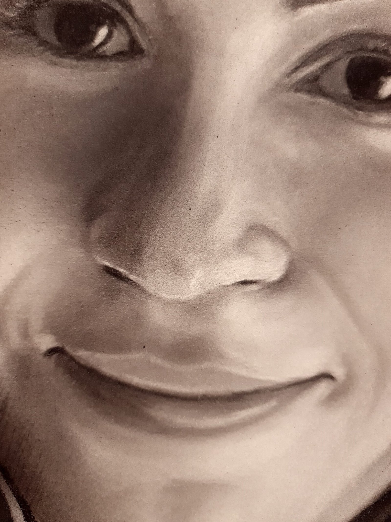 Cada retrato es un intento de capturar la esencia de ese momento único en el que no hacen falta palabras. Me encanta centrarme en el parecido físico, pero a la vez incluir esos rasgos personales que nos hacen únicos a cada uno de nosotros, todo ello rodeado de una atmósfera difusa, abstracta y etérea. Suelo jugar con la luz y la sombra, aprovechando todo el poder del carboncillo para añadir profundidad y realismo, dando vida a cada pliegue, a cada gesto.