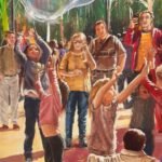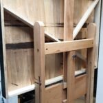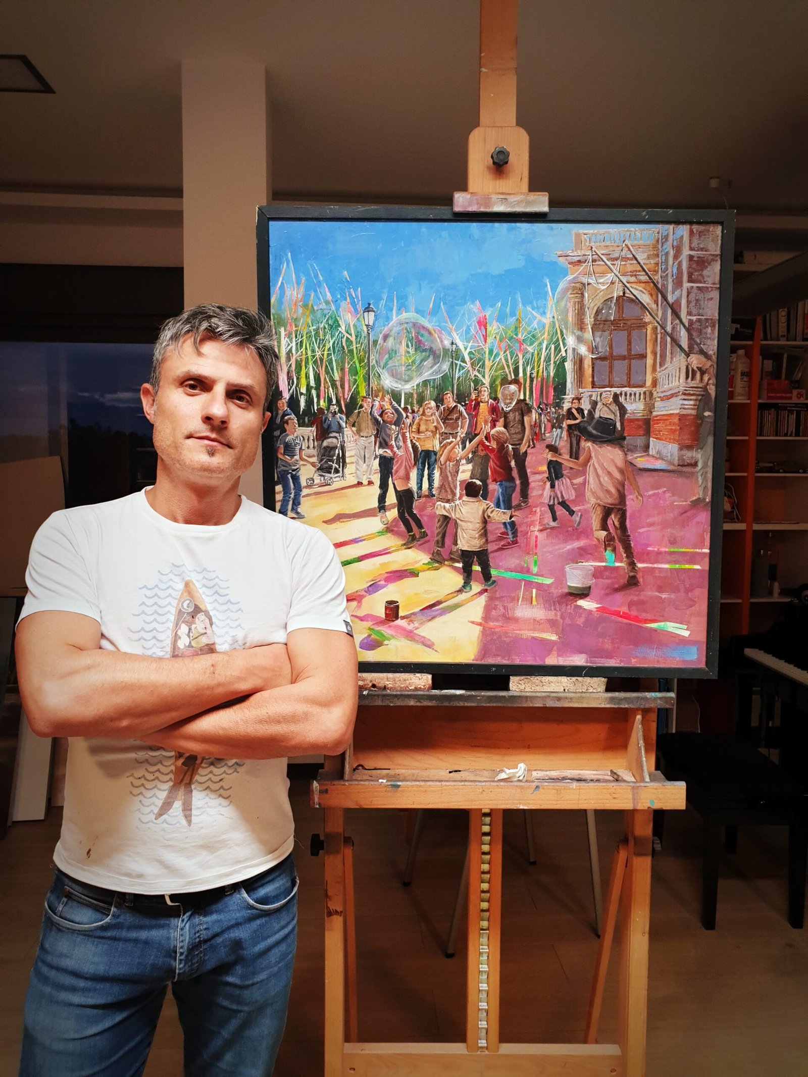This painting captures the essence of tradition, folk architecture and customs, contrasting them with the evolution that comes with the passage of time and changing ideas. The scene portrays an old building with rustic wooden beams and sturdy stone columns, emblematic of traditional architecture. Earthy tones and warm hues give the structure a timeless quality, evoking a sense of nostalgia and respect for the craftsmanship of generations past.