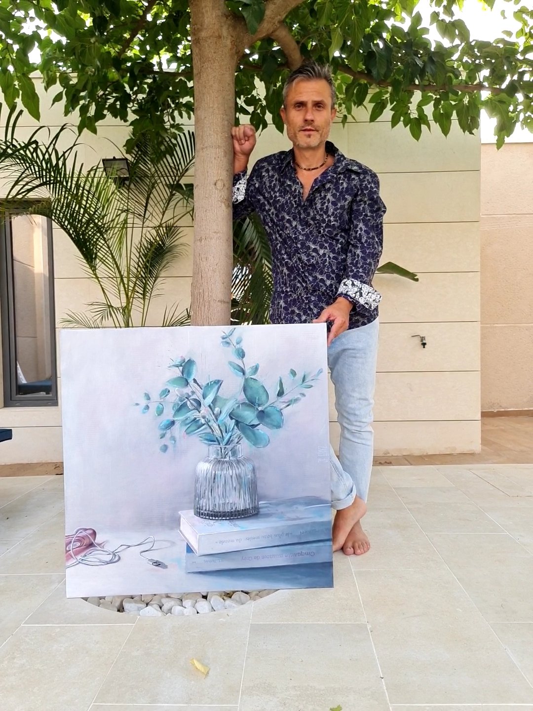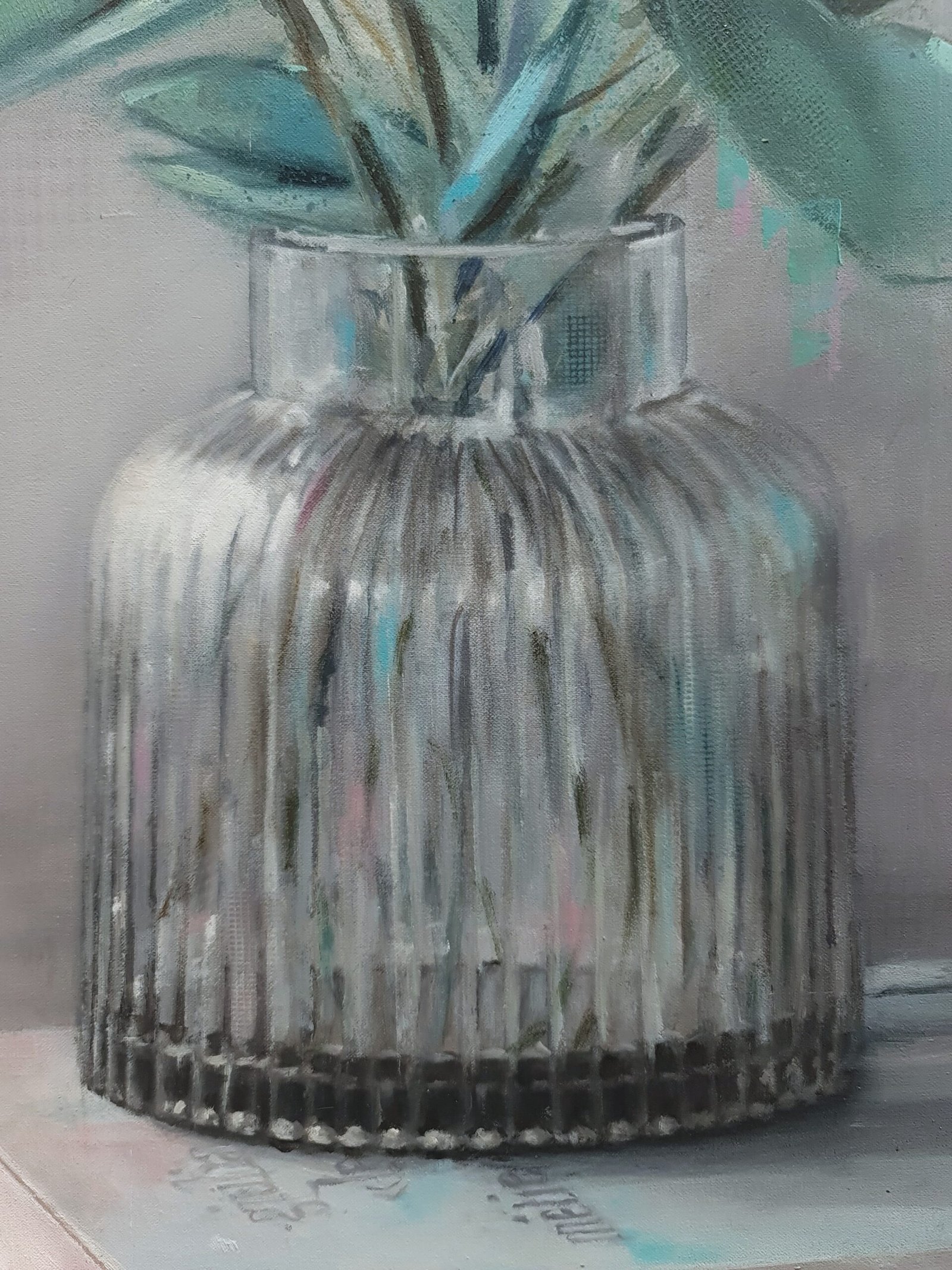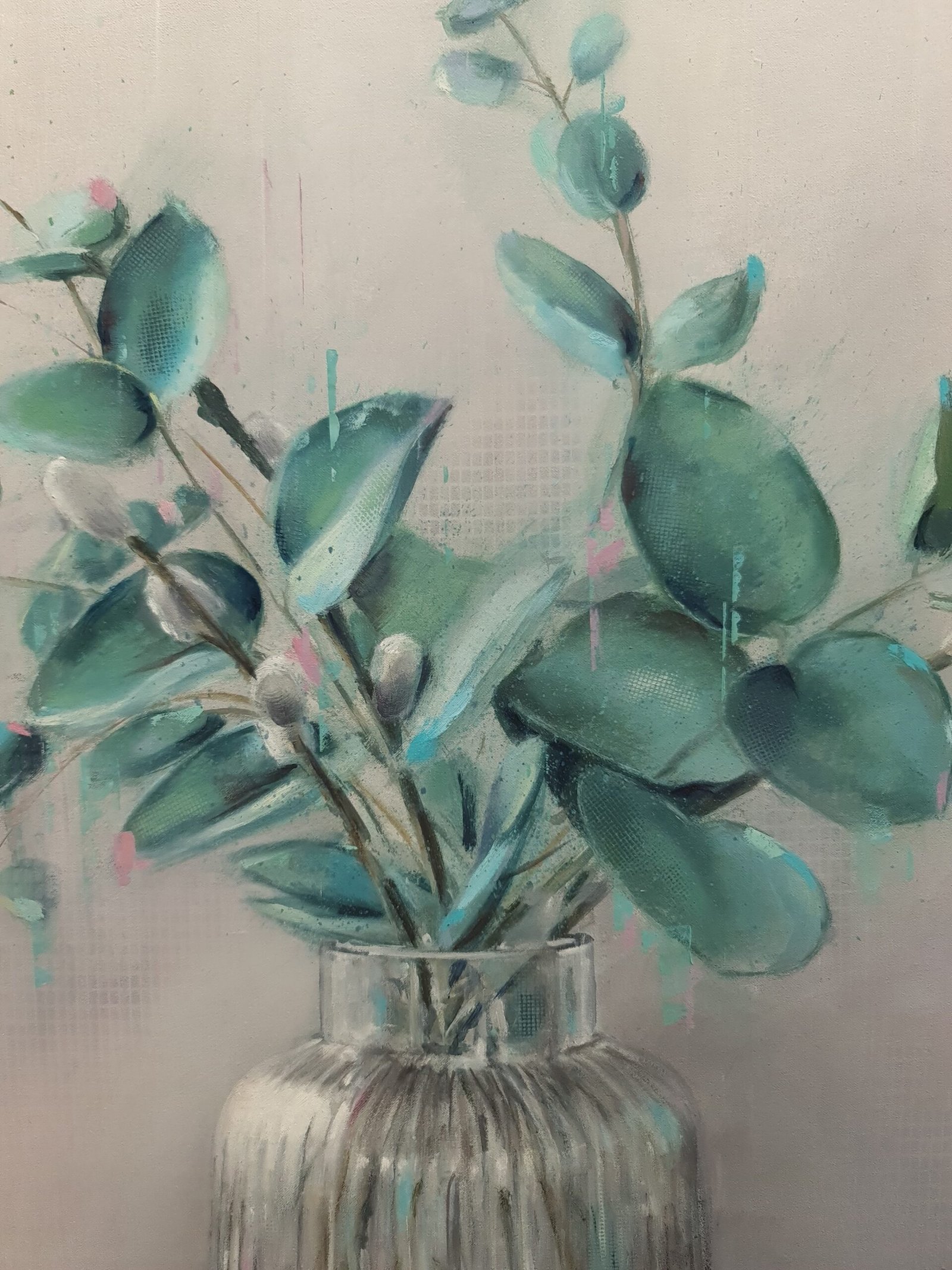 This work belongs to the Plants, Flowers and Everyday Objects series. On this occasion, life is brought to us by some branches of eucalyptus cinerea, placed in a dark glass vase with a little water. The object is one of the most sought-after elements of recent years, which has caused a female revolution and has put on the table the advancement of gender equality and the current and liberating role that women occupy at this time. Along with the object, a USB charger cable so that everything is ready for those sleepless nights... Together they form a perfect combination to decorate any space and bring life, movement and modernity.