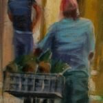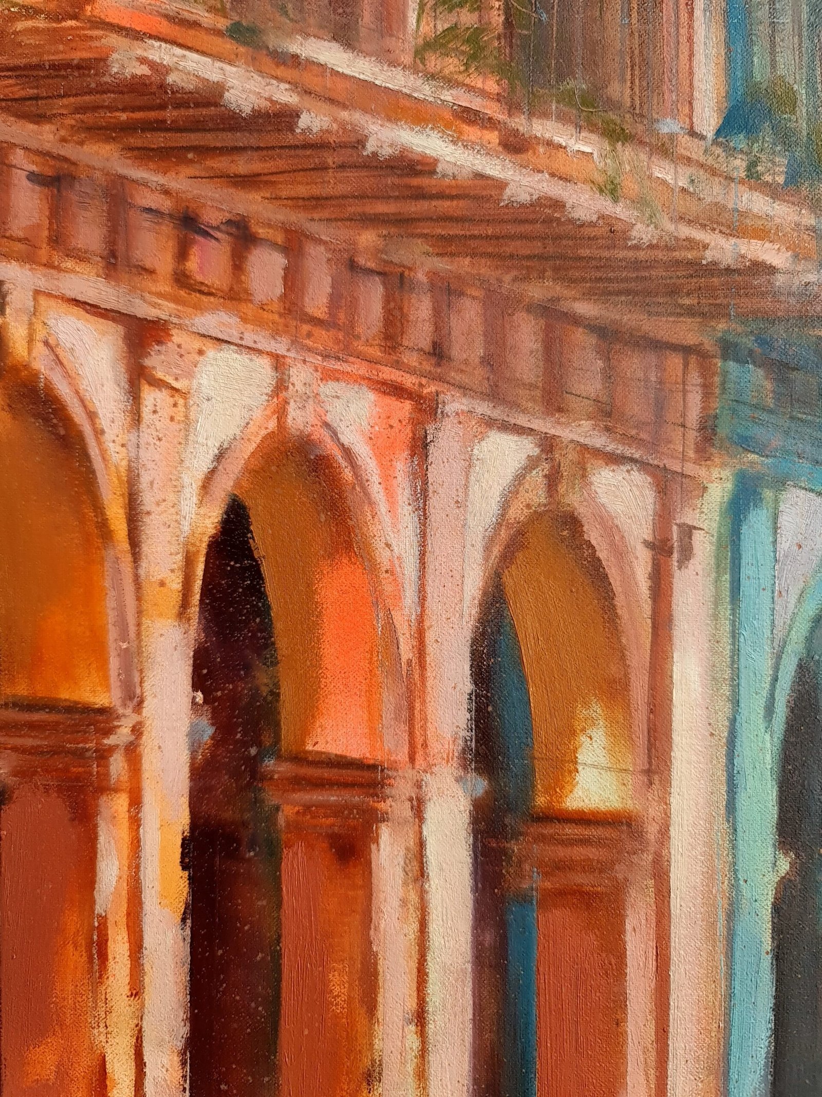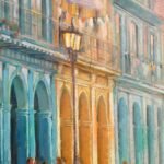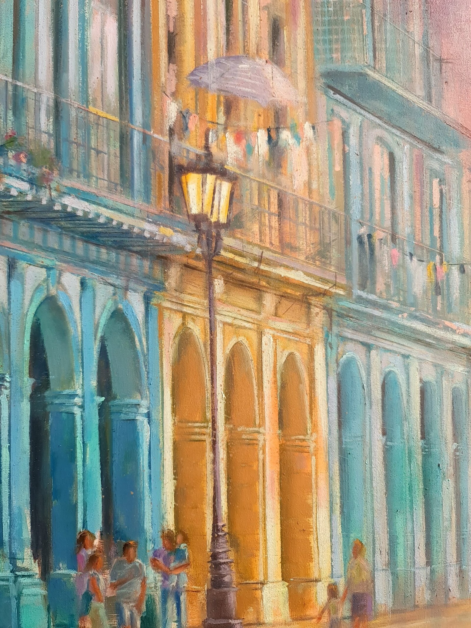 This work is part of the “Urbanas” series. This series includes, among others, paintings that portray the night in cities and tell of the relationship with their environment and their people. Life under the moonlight develops differently than during the day. The reigning darkness hides our fears and insecurities and disguises us with our purest and most authentic face.