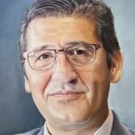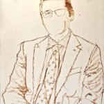 The play of light and shadow not only adds depth but also emphasizes the details and gives volume to the figure, making each feature come to life. The choice of a neutral background allows the subtle tones of the face and suit to stand out, enhancing the elegance of the composition without distractions. This portrait doesn’t just reproduce an image; it seeks to connect and reflect the subject’s essence.