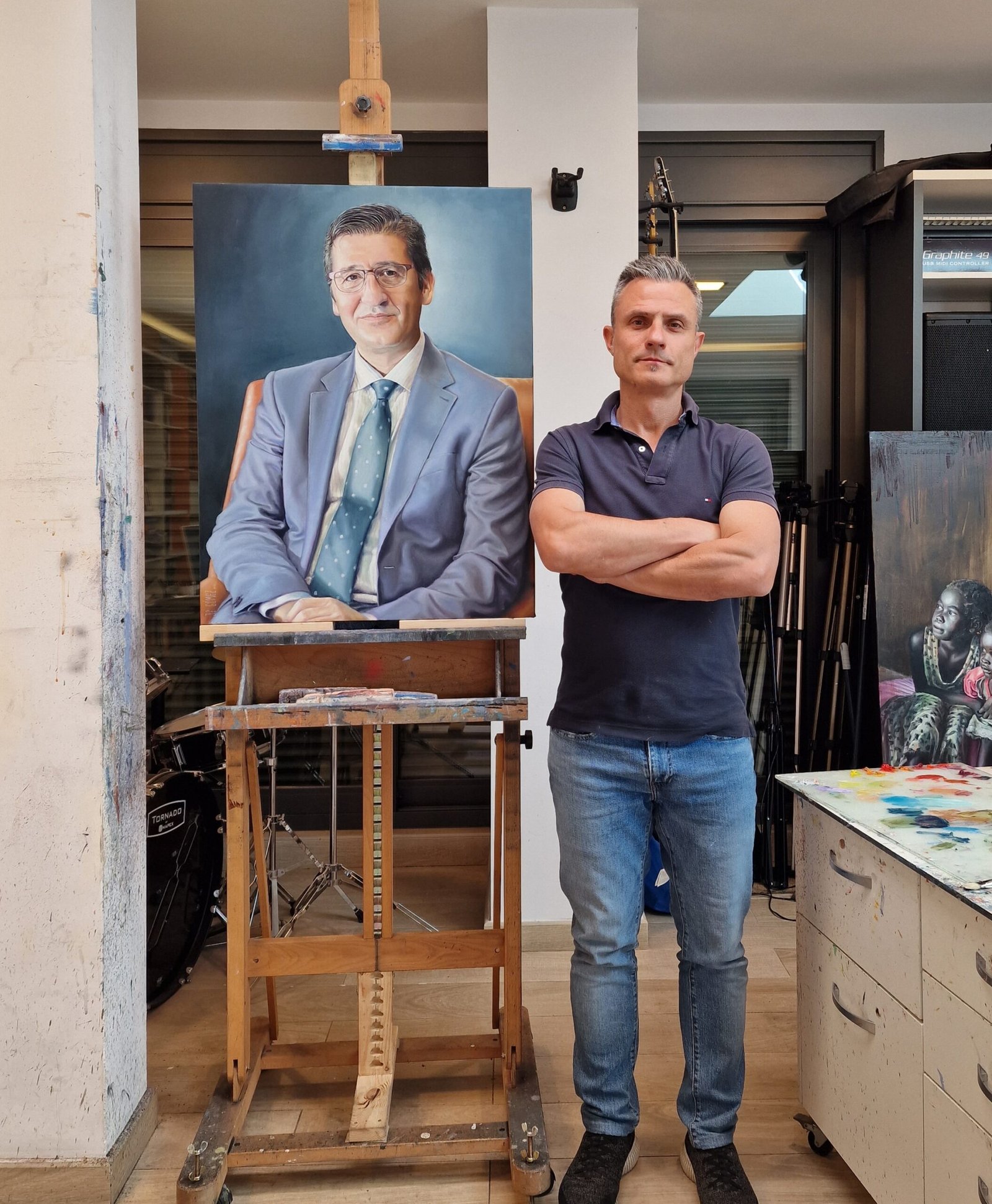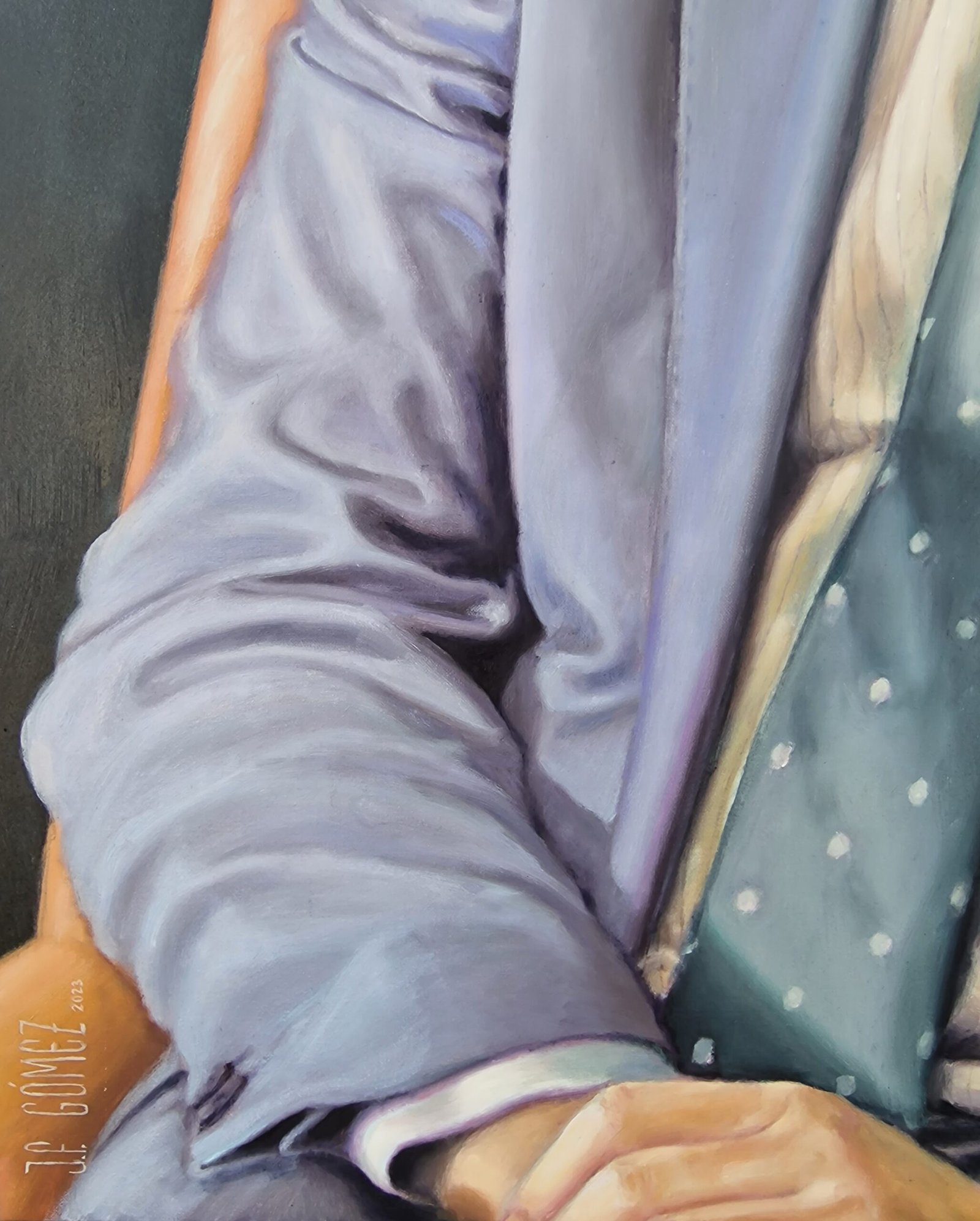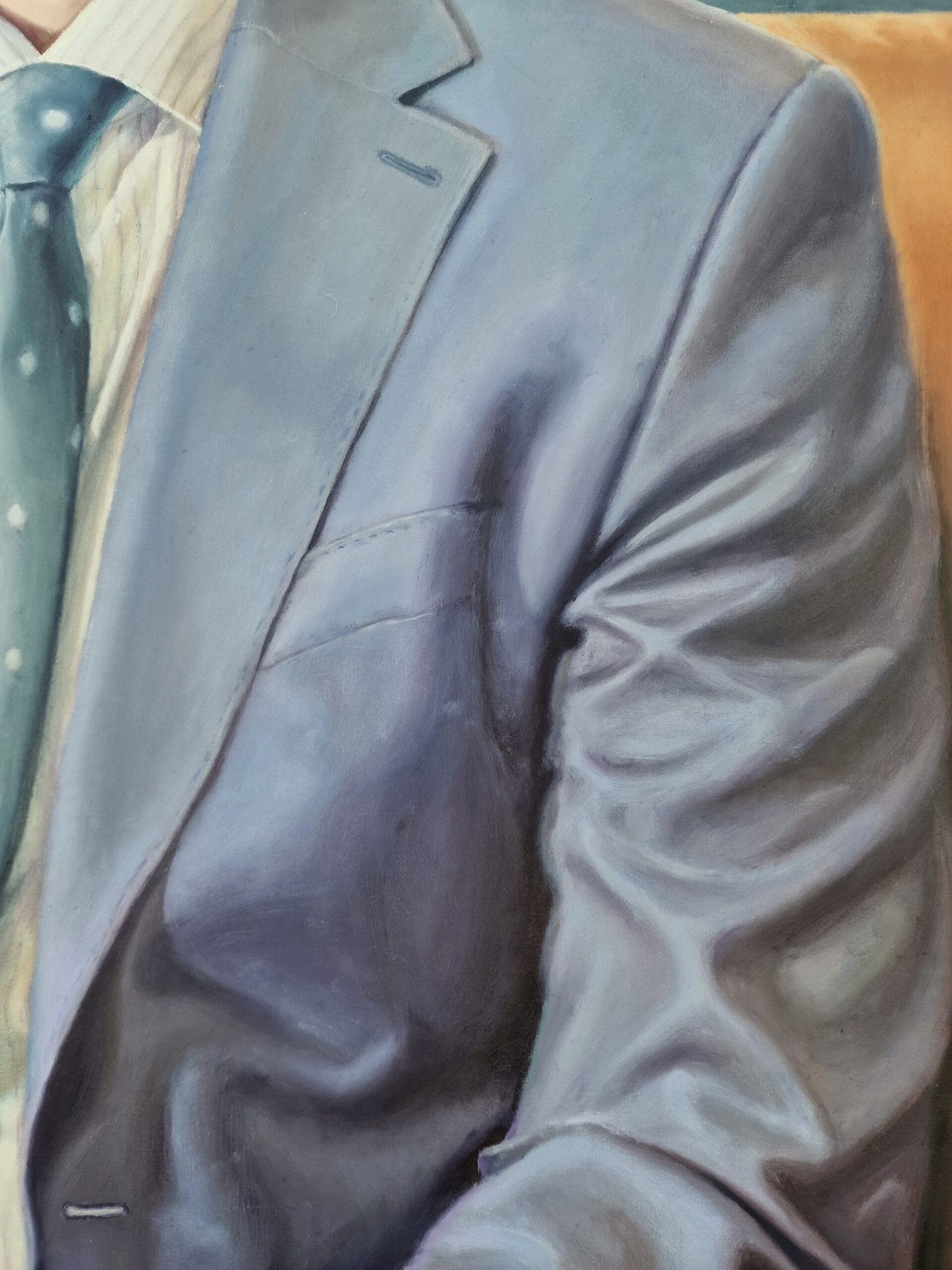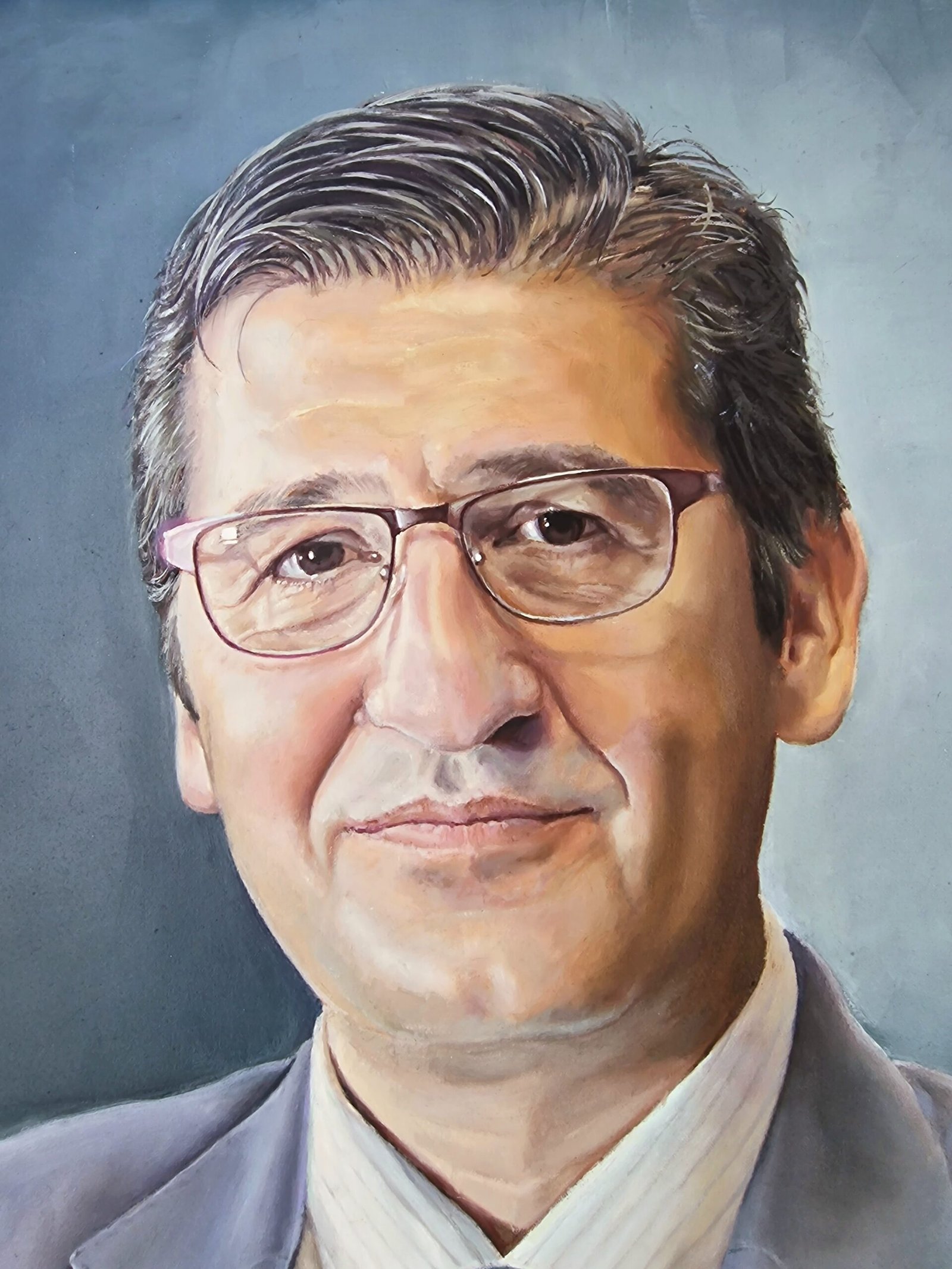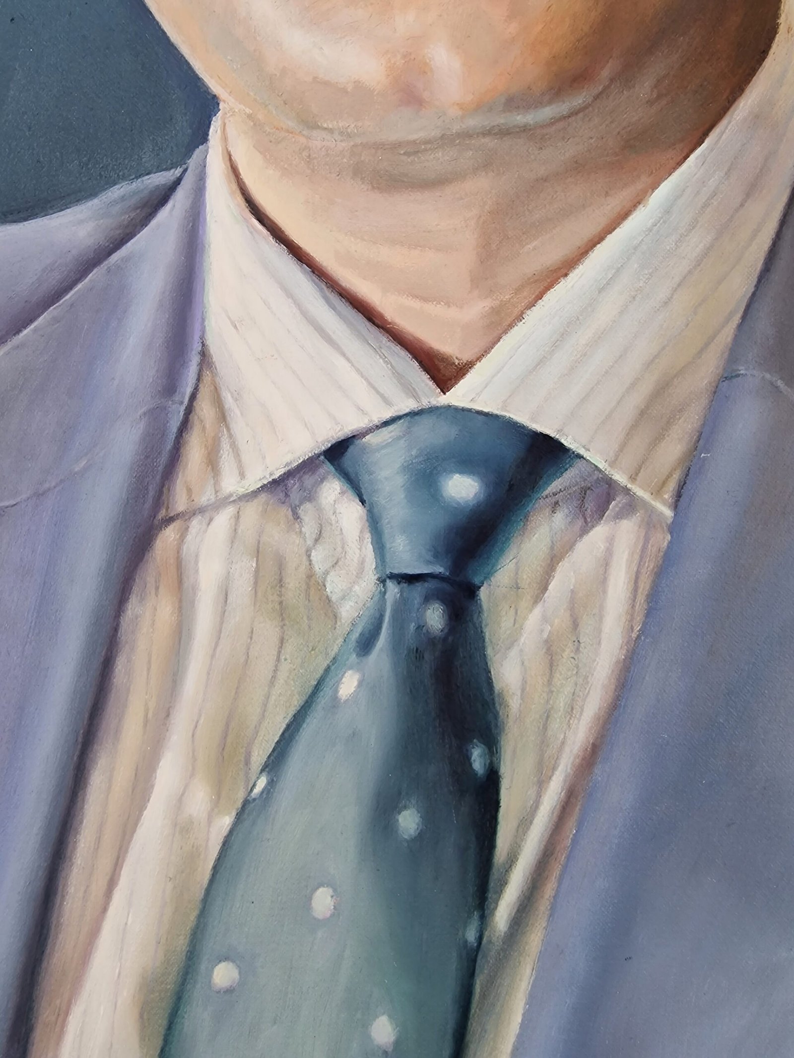 When I create a portrait, I aim to capture something beyond the image—something that reveals the essence and conveys the subject's personality. In this particular portrait, I focused on the textures of the suit with soft, detailed brushstrokes, giving it a sense of movement and a warmth that brings the viewer closer to the subject in a more intimate way.