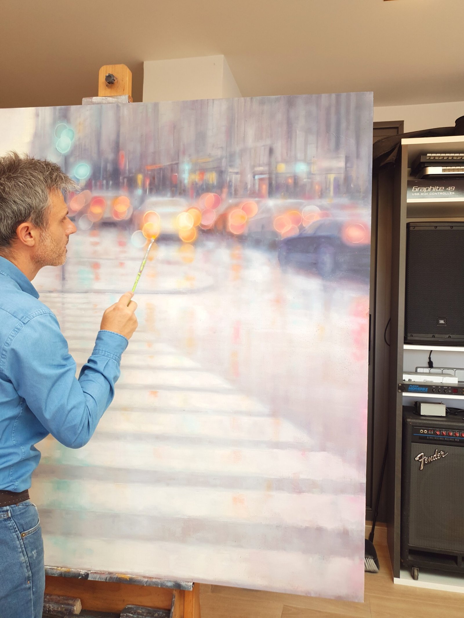 Large-format work, belonging to the Urban Landscapes series . Life is a path full of curves, straights, obstacles and detours. Sometimes, the search for our