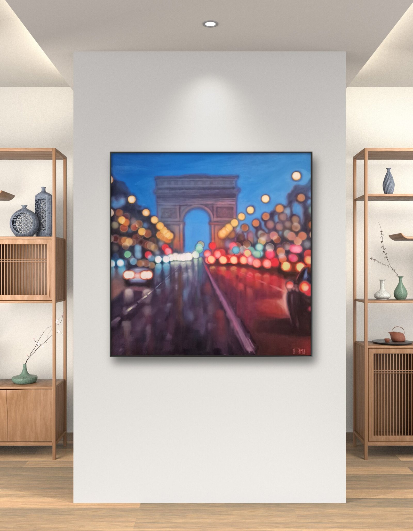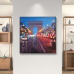 The car lights take over Paris, gliding their glimmers down the avenue, creating a symphony of sparkles dancing in the twilight. The shops and cafes along the boulevard exude a magical atmosphere. The elegance of Parisian architecture harmonizes with the vitality of its people. This sunset celebrates the beauty and solemnity of a city brimming with history, open and dynamic; a reference in Europe, the capital of the world.