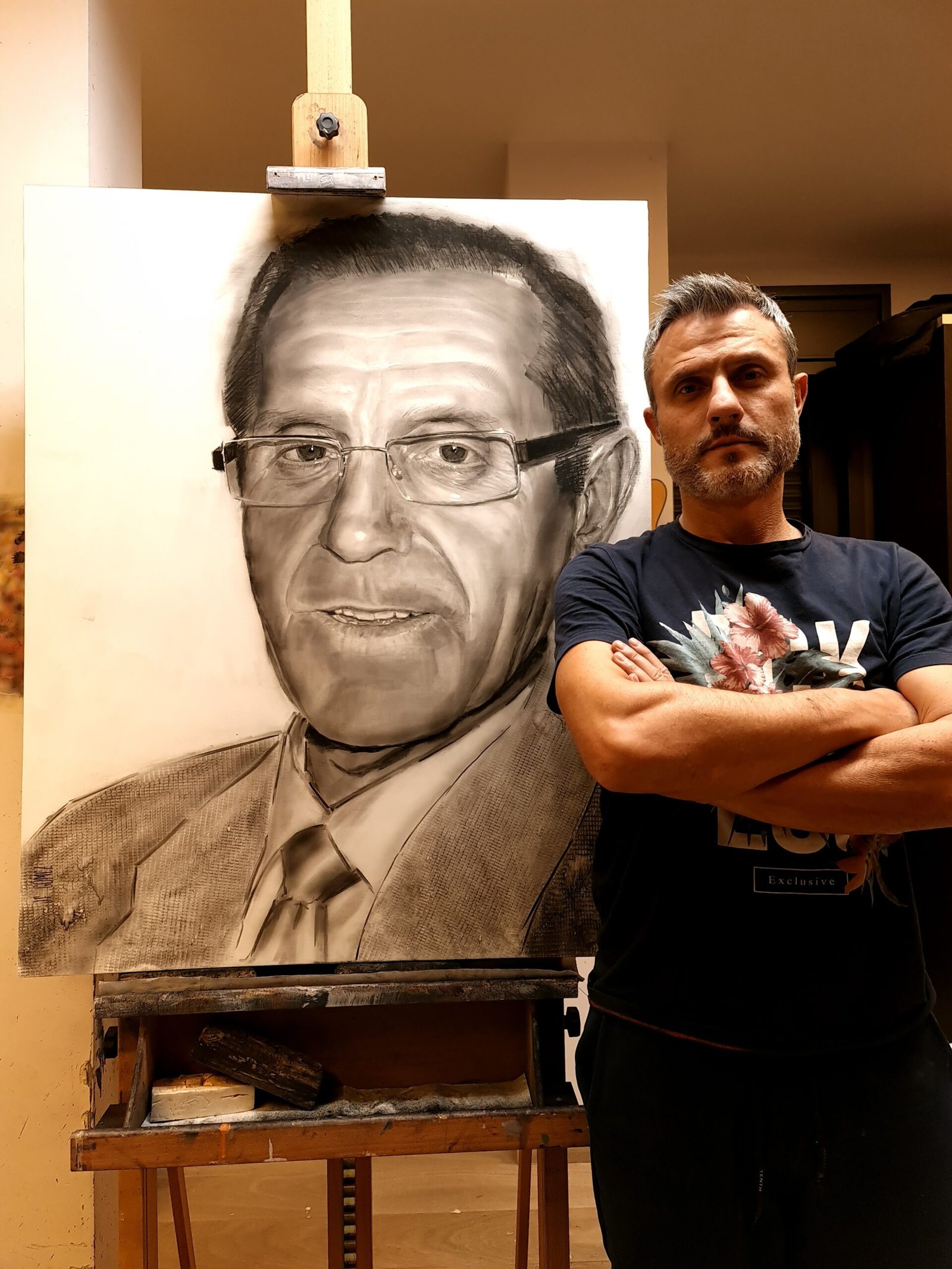 Each portrait is an attempt to capture the essence of that unique moment in which no words are needed. I love to focus on the physical resemblance, but at the same time include those personal traits that make each of us unique, all surrounded by a diffuse, abstract and ethereal atmosphere. I tend to play with light and shadow, taking advantage of all the power of charcoal to add depth and realism, giving life to every crease, every gesture.